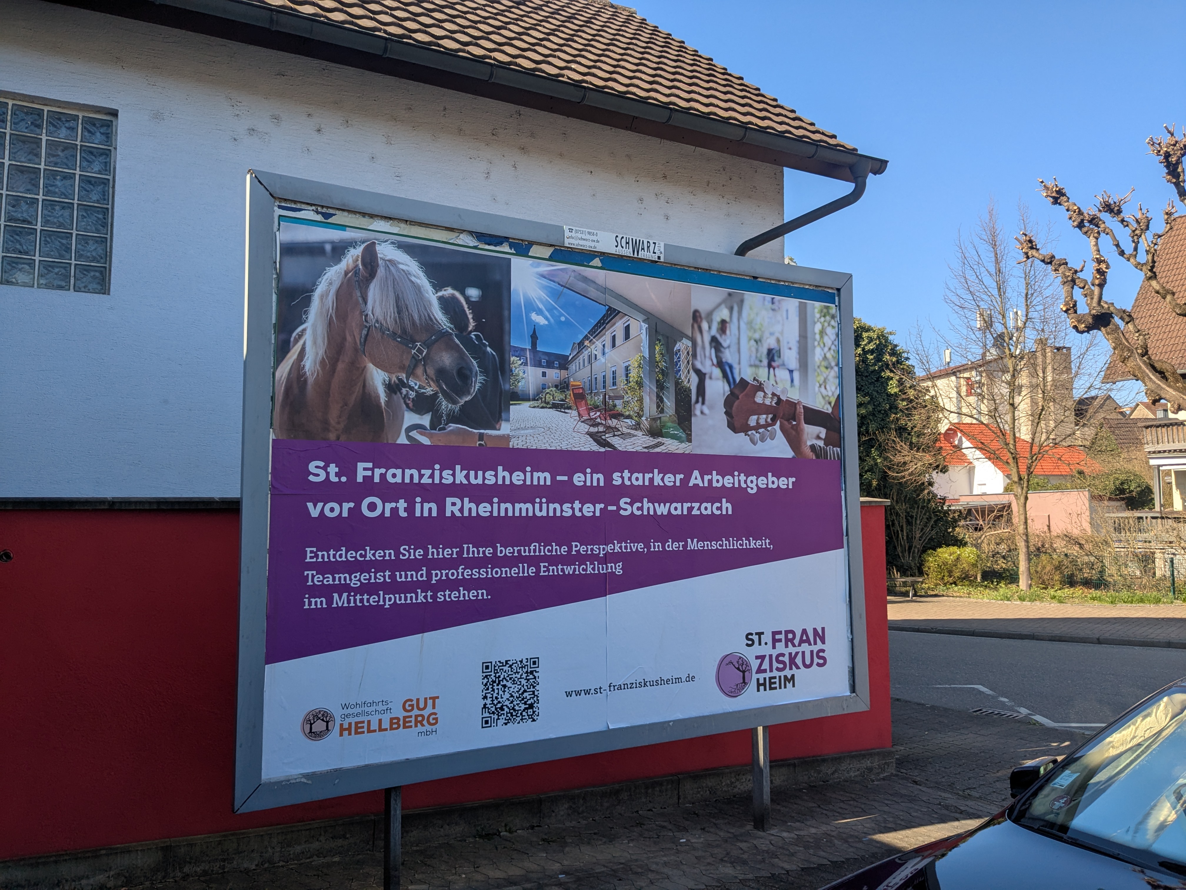 Im St. Franziskusheim wurde in den letzten Tagen eine kreative und unkonventionelle Personalsuche gestartet, um auf die offenen Stellen aufmerksam zu machen. Die Kampagne setzte auf Groß-Plakatwerbung an ausgewählten, strategischen Standorten im Umfeld von Schwarzach. Durch diese gezielte Platzierung sollten potenzielle Bewerber direkt im Alltag angesprochen und für die Möglichkeiten im St. Franziskusheim begeistert werden. Wir wollen auf die wertvolle Arbeit im St. Franziskusheim aufmerksam machen und die besondere Atmosphäre des Hauses vermitteln.