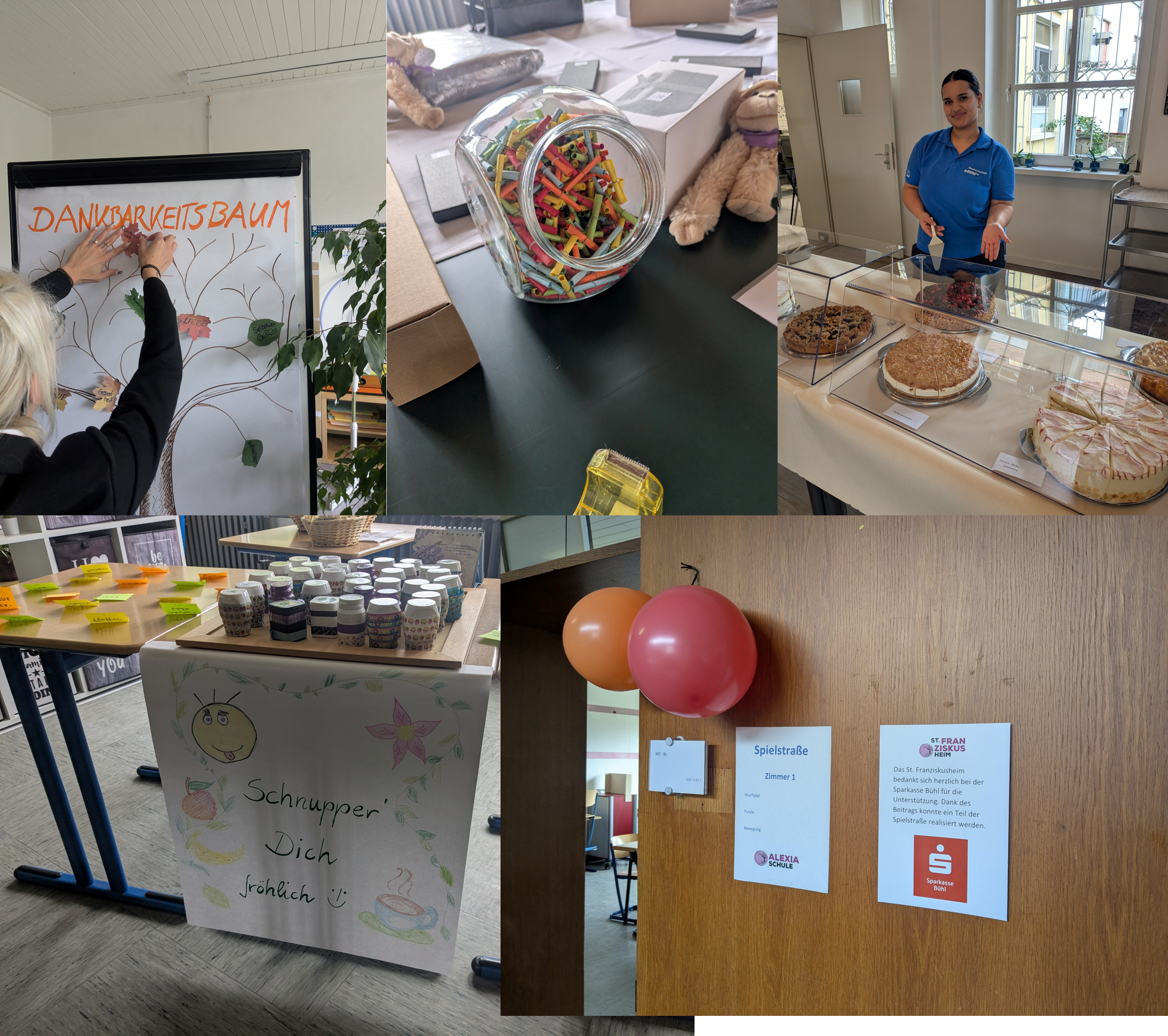 Für das leibliche Wohl war bestens gesorgt: Mit leckerem Kuchen, frischer Quiche und duftendem Kaffee wurde ausgiebig geschlemmt. Auch für unsere kleinen Gäste war einiges geboten – von Kinderschminken über eine Spielstraße und Tombola bis hin zu einem Achtsamkeitsparcours, bei dem es viel zu entdecken und zu riechen gab.
